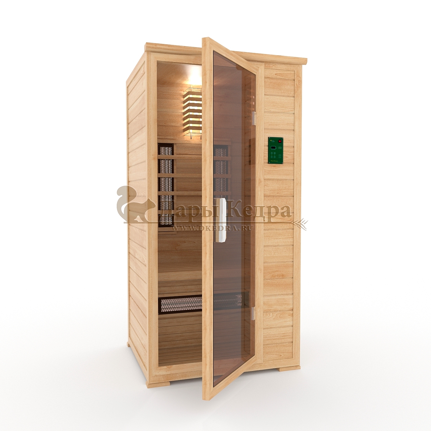 Одноместная инфракрасная сауна кабина из кедра и липы с керамическими нагревателями Это специально оборудованная кабина из липы для прогрева тела человека сухим теплом. Воздух в таких парных не нагревается. Инфракрасные лучи воздействуют на тело, равномерно прогревая мышцы, суставы и органы. Керамические излучатели похожи на лампы, имеют высокую температуру нагрева, поэтому защищены противоожоговыми решетками. Тело человека в таких саунах нагревается интенсивнее. Работает кабина за счет электричества. Компактная одноместная инфракрасная сауна с керамическими излучателями подойдет как для домашнего использования, так и для коммерции. Обращаем Ваше внимание, что в стандартную комплектацию входит трапик для ног, но вы можете его заменить на цельный пол совершенно бесплатно!