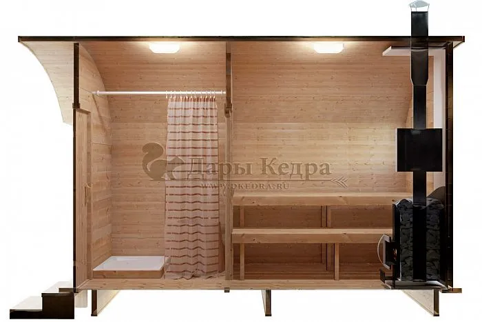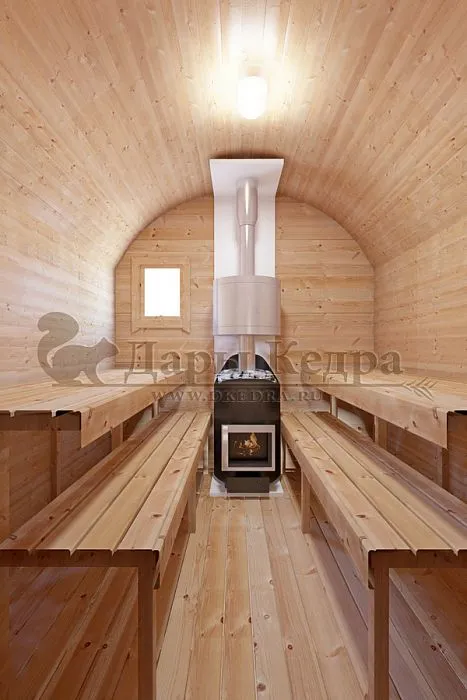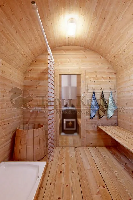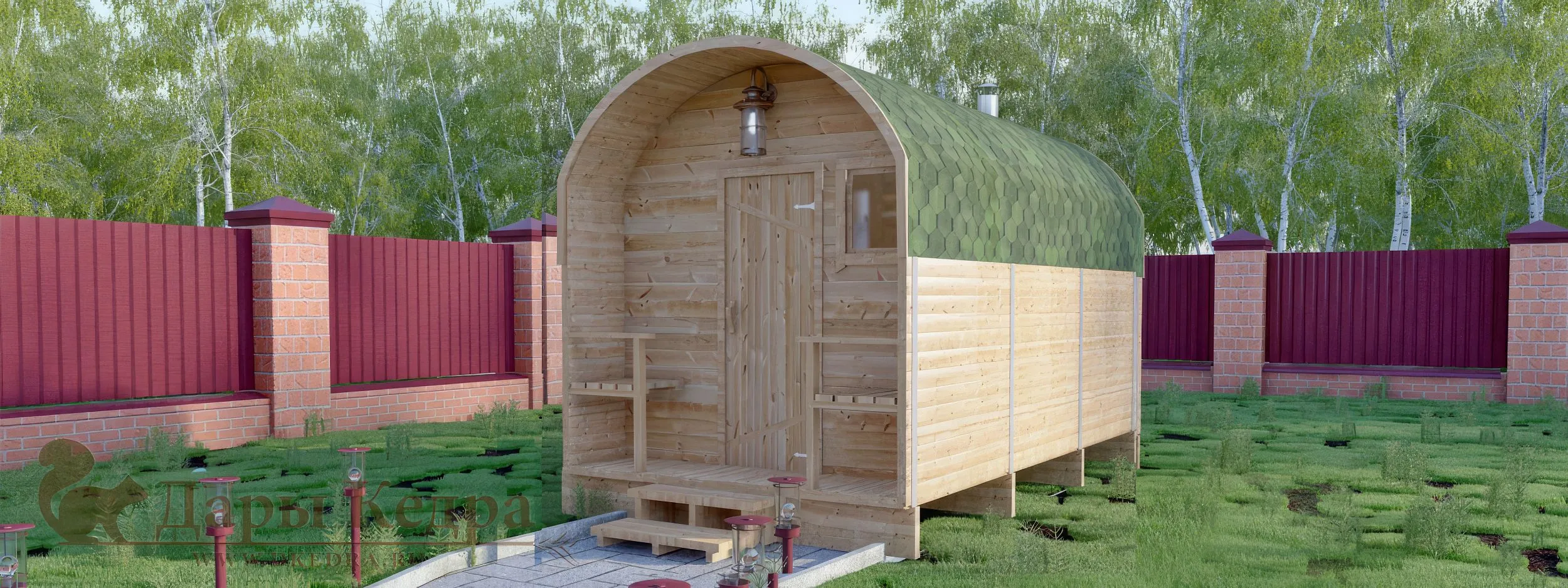 • Баня-бочка в виде буханки - это сочетание красоты и комфорта по доступной цене.