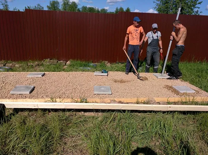 • При желании площадку для установки бани можно залить бетоном или организовать столбчатый фундамент.
