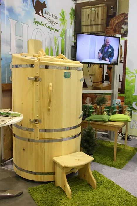 - Набор "Противовирусный" включает в себя толстостенную фитобочку из кедра. Ее можно расположить абсолютно в любом помещении, так как занимает около 1 кв.м. Она полностью герметична, поэтому опасения, что отпадут обои, абсолютно бессмысленны. При нагревании фитобочки активируются фитонциды кедра, которые сами по себе являются природным антисептиком, обеззараживающим помещение. Фитонциды борются с вредными бактериями и микроорганизмами даже тогда, когда бочка просто стоит в комнате.